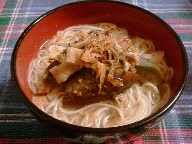 こちらはお素麺をアレンジした一品。 冷たいお味噌汁に素麺も美味しい♪
