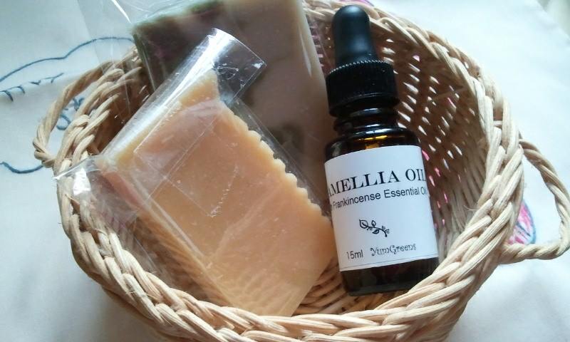 オイルはツバキオイル(お肌に付けられるもの)で