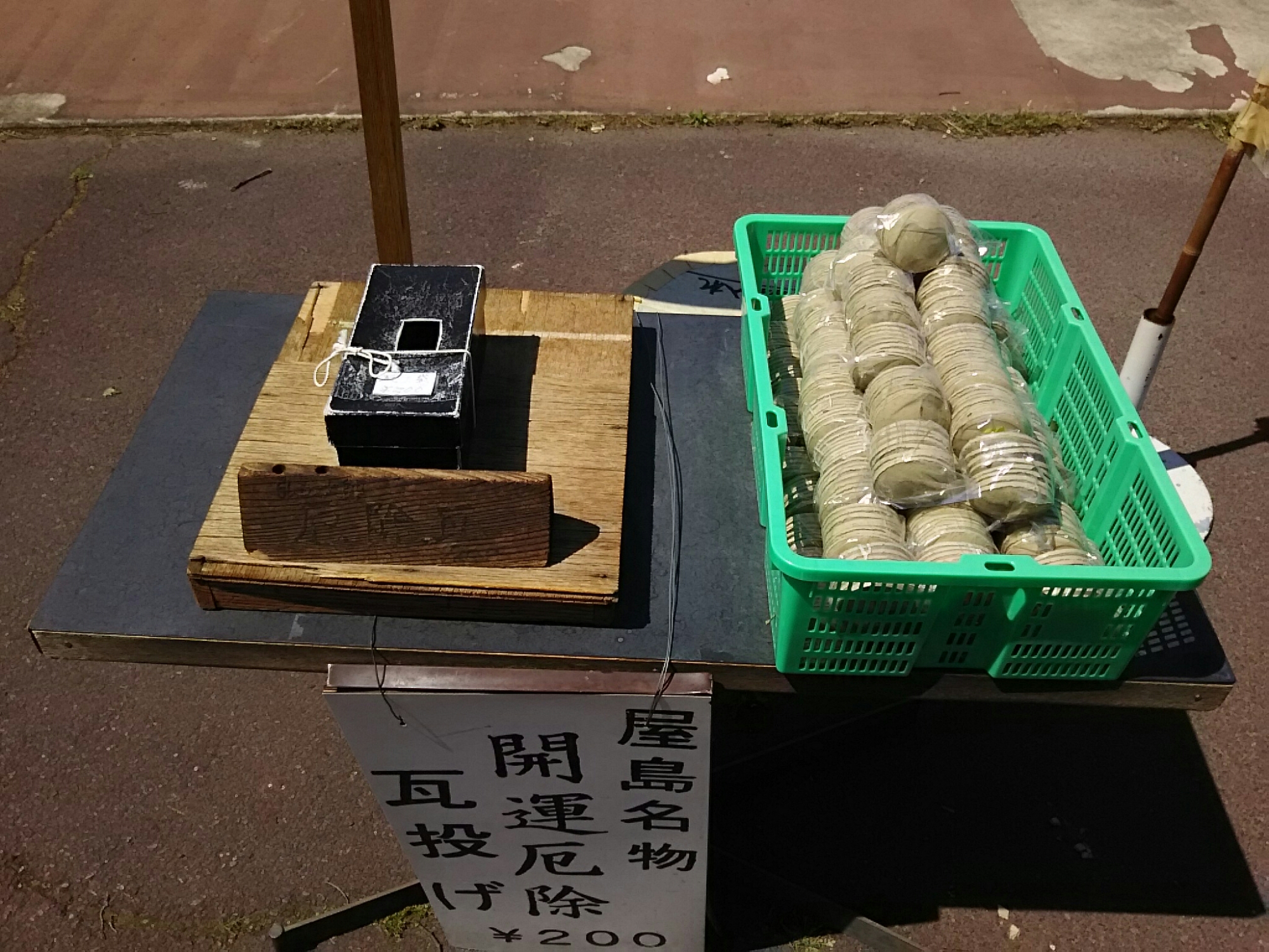 投げると願いごとが叶うと言う瓦焼き。