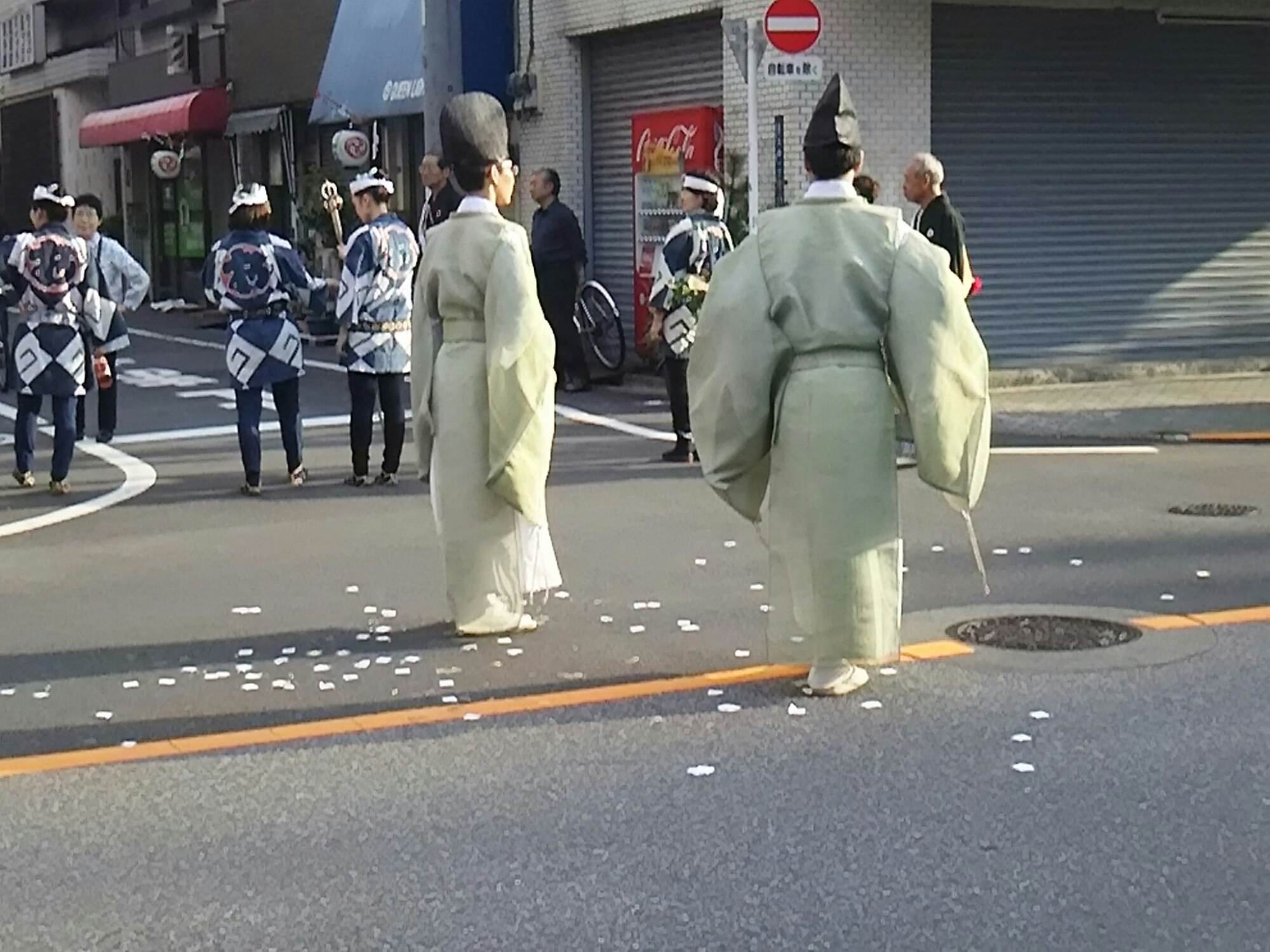 浅黄色の装束で、この方達は神社の方だそうです。何気に雅。