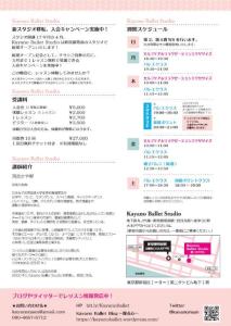 新宿御苑前と代々木にて、バレエクラスを開講しています。 初心者から経験者までバレエの基礎を分かりやすく 必ず身に付くよう指導しています。 バレエの基礎固めや身体の使い方、 音楽性や表現力を磨きたい方は、ぜひ当スタジオへお越しください。 より細やかに、そして伸び伸びと踊れるように センスアップ!して行きましょう。 レッスンは予約制となっています。 前日までにご予約頂くか、当日参加の方は クラス開始2~3時間前を目安にご連絡下さいませ。 Kayano Ballet Studio HP お問い合わせは→こちらから![]()