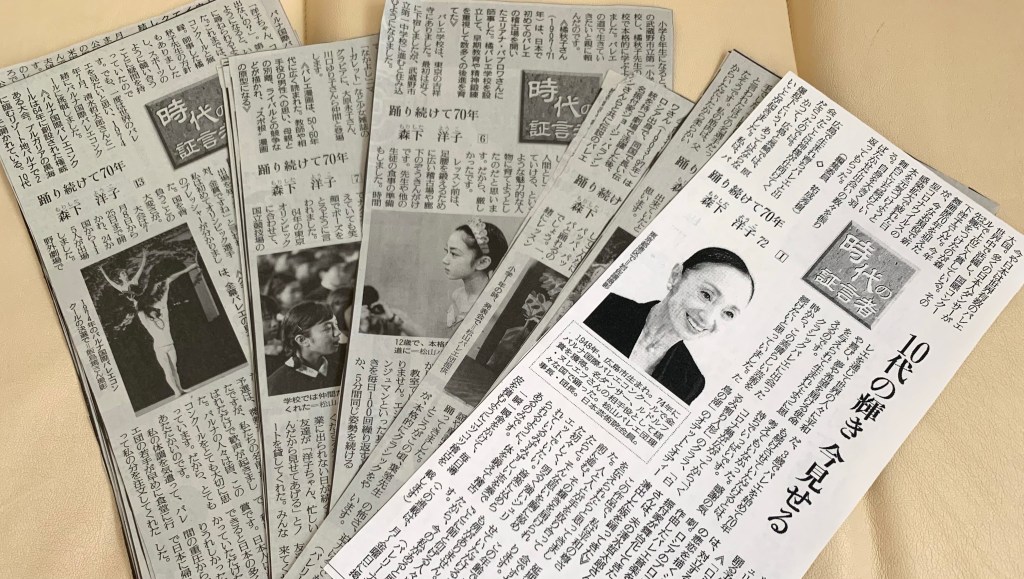 先日母が手作り梅干しと一緒に、読売新聞に32回に渡って掲載されていたバレリーナ・森下洋子さんの連載『時代の証言者』を切りぬいて送ってきてくれました。母は気に入った記事を切り抜いて取っておくことが好きなのです。アナログ感覚だけど、良いよね。