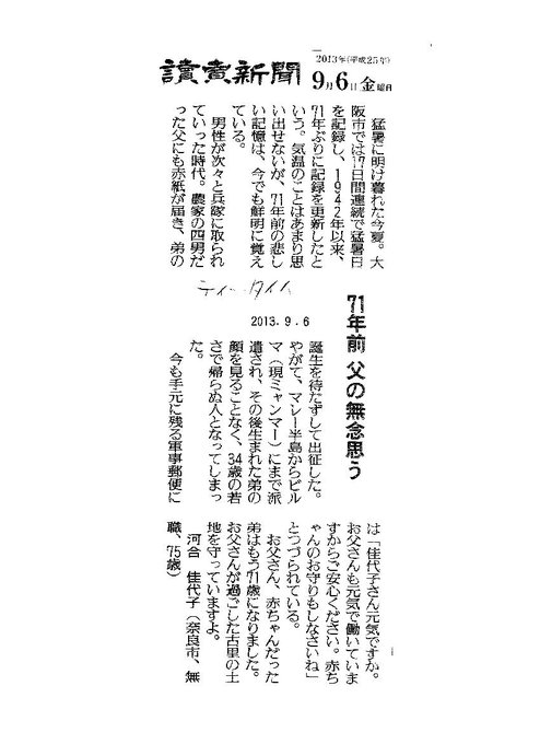 母は終戦時には7歳。祖父はガダルカナル島で戦死したのですが、生前現地から送ってくれた葉書を見せてくれたこともあります。