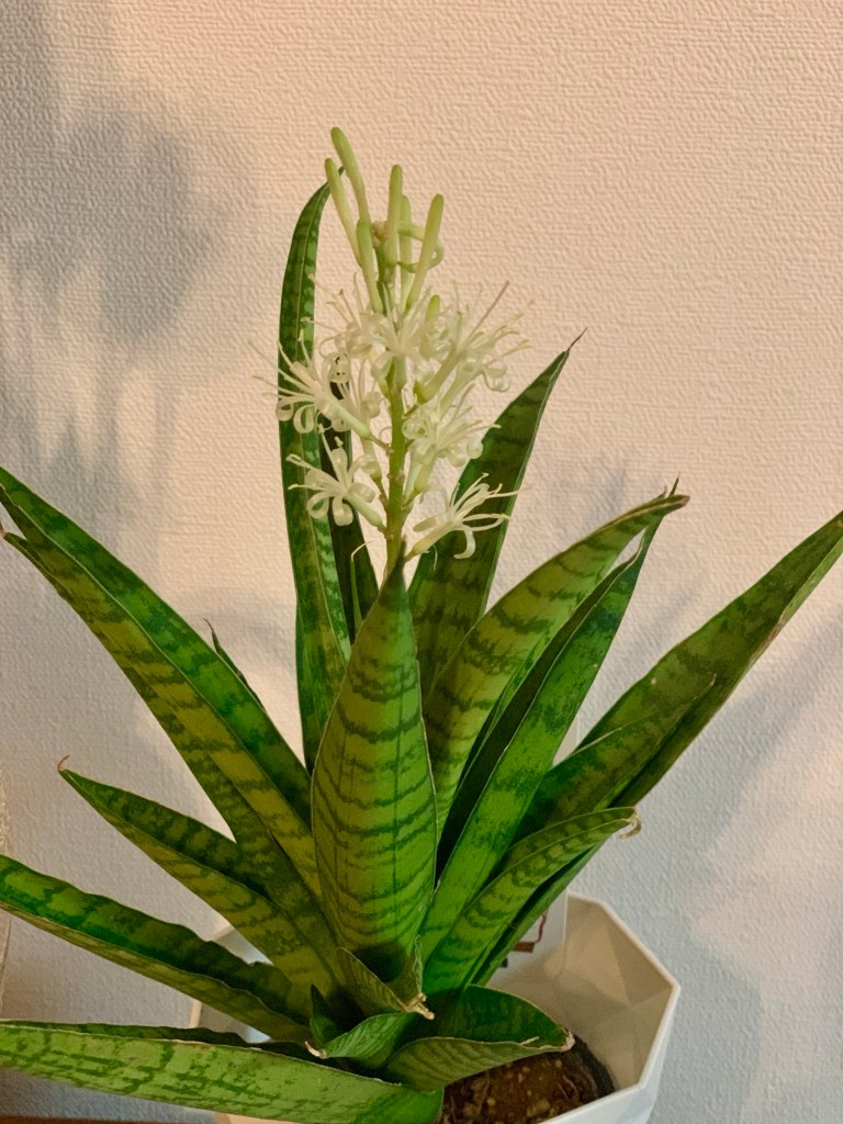 滅多に無いことと言えば、一昨日「サンセベリア」の花が咲きました。花が咲くのはとても珍しいことだそうなので、貼っておきます☺️