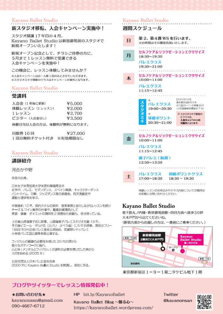 昨日は募集のための拙チラシを、バレエショップ5店舗に置かせて頂きました。